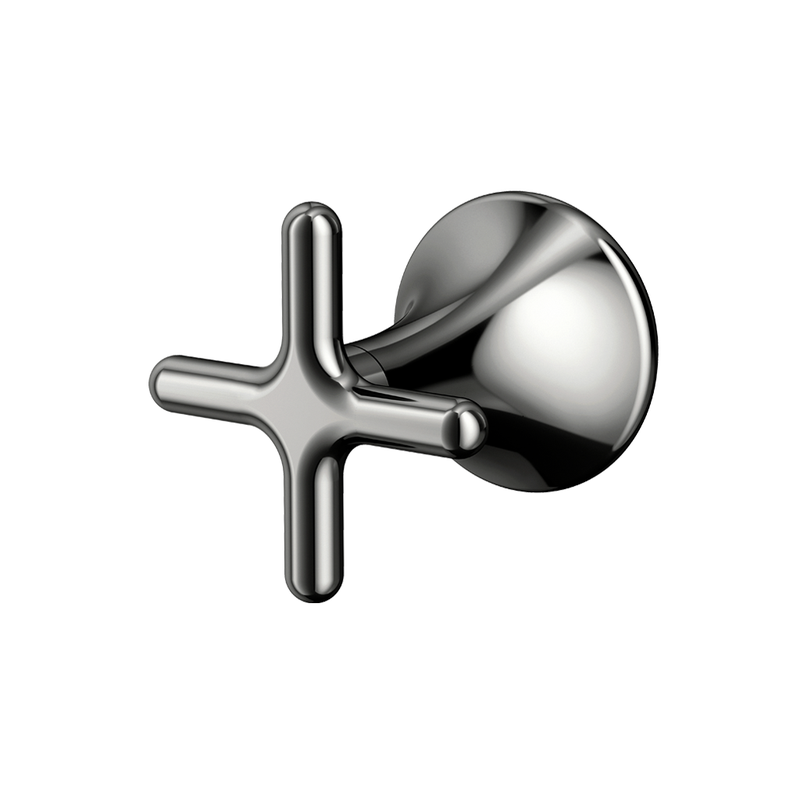 O formato cruzeta proporciona pegada firme, conforto e precisão ao abrir e fechar, mesmo com as mãos molhadas, garantindo controle suave do fluxo de água.
