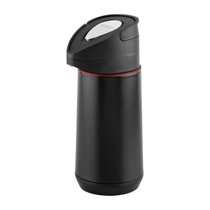 Equipada com bomba de pressão para acionamento seguro e ágil, a garrafa conta com botão em inox, sistema corta-pingos e trava embutida de fácil manuseio. Seu design ergonômico traz alça embutida e puxador intuitivo, garantindo firmeza ao servir. A ampola de vidro interna proporciona excelente isolamento térmico, enquanto todos os componentes são BPA free, assegurando mais saúde e segurança ao consumidor. Leve, compacta e fácil de transportar, ela é ideal para o uso diário com muito mais estilo e confiança.