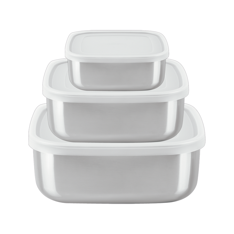 O conjunto inclui três tamanhos versáteis: 1,2L, 2,1L e 3,6L, ideais para porções pequenas, médias e grandes com organização.