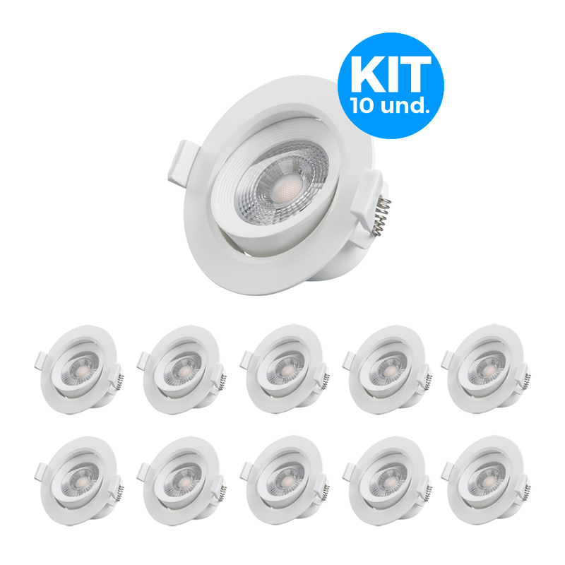 É um conjunto com 10 spots LED Lorenzetti de 5W, modelo redondo e bivolt automático (127V/220V), ideal para ambientes internos. Cada unidade oferece luz amarela 3000K, com foco direcional e design moderno para decoração elegante e aconchegante.