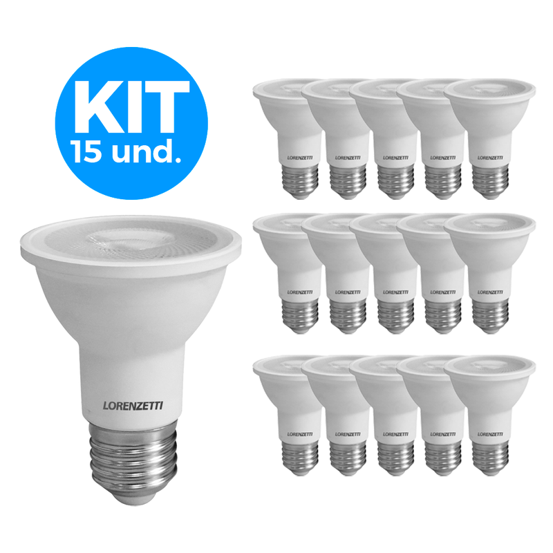 O kit contém 15 lâmpadas LED Lorenzetti Par 20 7W Bivolt E27, ideais para quem busca iluminação potente, econômica e duradoura em diversos tipos de ambientes.