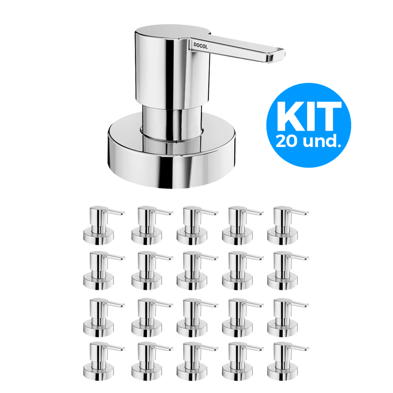 É um conjunto com 20 acabamentos para registro da linha Docol Gali 800006, compatíveis com DocolBase. Ideal para padronizar grandes projetos com design clean, alta durabilidade e excelente custo-benefício.