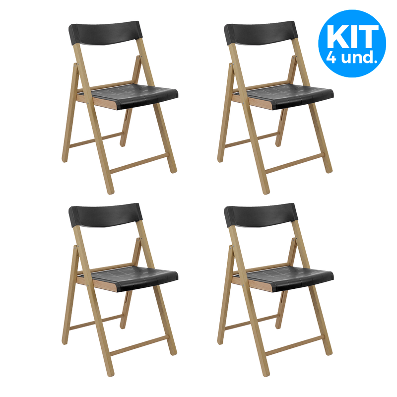 O kit 4 cadeiras de madeira dobrável tramontina potenza 13792382 é um conjunto com estrutura em madeira tauari e assento e encosto em polipropileno preto. Ele oferece resistência, leveza e design moderno, sendo ideal para ambientes internos ou cobertos. A proposta é unir praticidade e estética para facilitar o uso no dia a dia.
