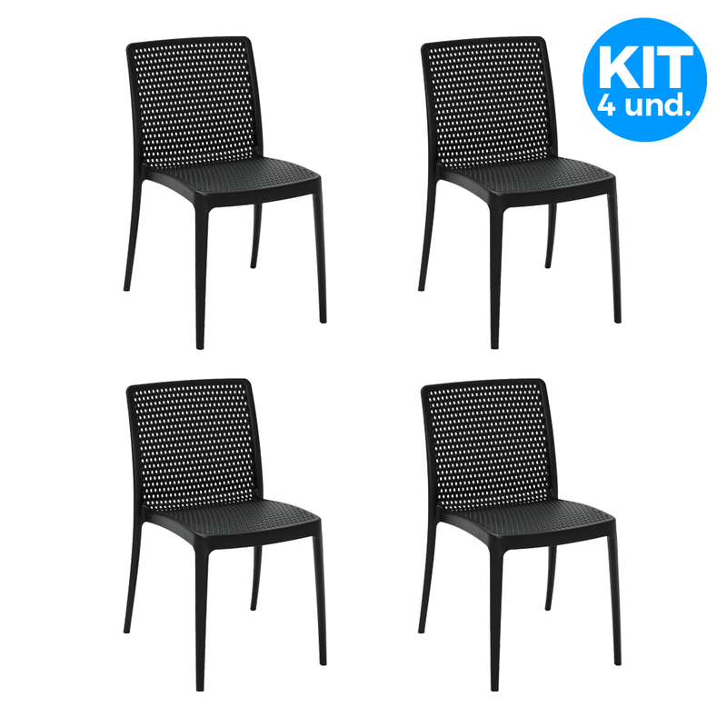 O kit 4 cadeiras tramontina isabelle em polipropileno e fibra de vidro 92150009 preta é um conjunto de cadeiras modernas, desenvolvido para oferecer resistência, leveza e design sofisticado. Fabricadas com material reforçado, suportam até 182 kg por unidade, sendo ideais para uso residencial ou comercial com excelente durabilidade.