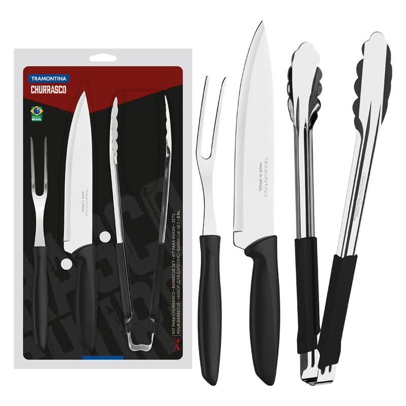 Os cabos em polipropileno preto proporcionam leveza, firmeza e conforto durante o manuseio, enquanto o pegador em aço inox com proteção emborrachada garante segurança e estabilidade ao servir. Todas as peças podem ir à máquina de lavar louças, trazendo mais praticidade à rotina. Para maior durabilidade, recomenda-se secar bem antes de guardar e manusear com cuidado, mantendo fora do alcance de crianças. Ideal para quem busca kit churrasco Tramontina inox 3 peças, resistente e funcional, este conjunto eleva o padrão do seu churrasco com estilo e eficiência. Garanta agora o seu e surpreenda seus convidados com qualidade profissional em cada detalhe.