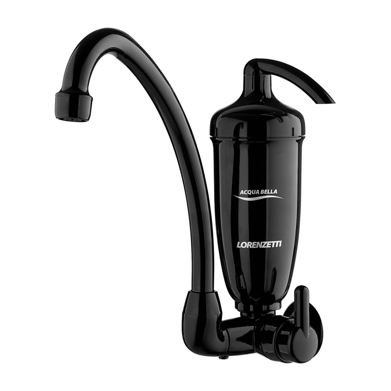 O Purificador Acqua Bella Com Torneira Preto Lorenzetti Parede é um sistema que combina torneira e purificador de água em um único equipamento. Ele permite usar água comum para tarefas da cozinha e água filtrada para beber ou preparar alimentos. O filtro com carvão ativado reduz cloro, odores e sabores desagradáveis, proporcionando água mais agradável para consumo diário.