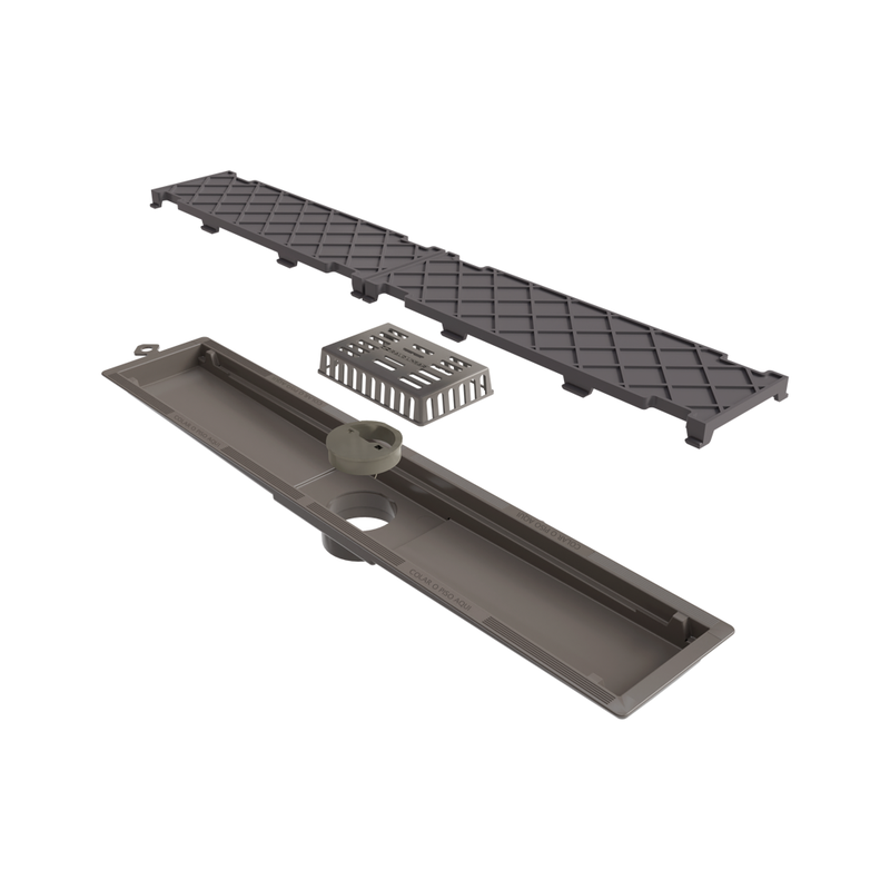 O grande diferencial do Ralo Linear Novii 50cm está na tampa oculta que permite aplicar o mesmo piso do ambiente, oferecendo acabamento discreto e elegante. Além disso, possui abertura central com queda interna, instalação sem cortes na laje e acessórios exclusivos como o fecha ralo e a grade retentora.