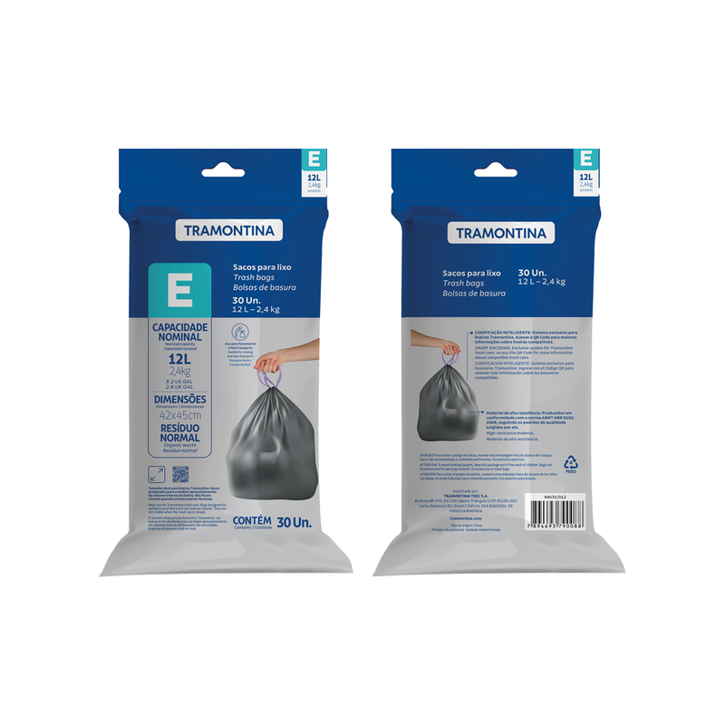 Ao escolher os Sacos de Lixo Tramontina, você garante um produto com alto padrão de fabricação, seguindo a norma ABNT NBR 9191:2008. Resistentes a rasgos, com encaixe perfeito nas lixeiras Tramontina e design pensado para facilitar sua rotina, eles oferecem muito mais que funcionalidade: oferecem confiança. Com a garantia de uma marca consagrada no mercado, você tem a certeza de estar comprando um produto eficiente, durável e comprometido com o meio ambiente. Invista na praticidade e na qualidade que só a Tramontina oferece.